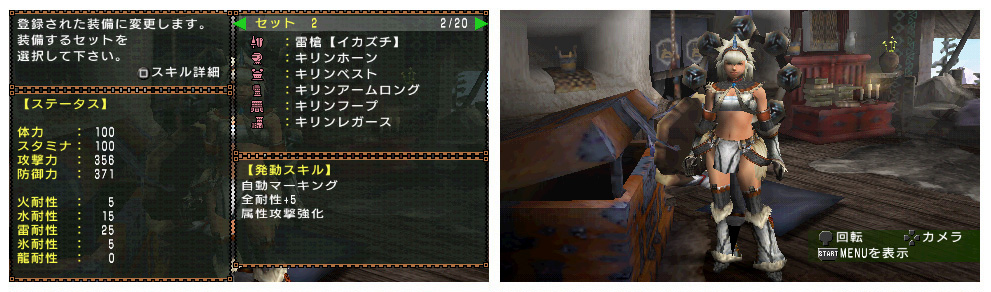 属性攻撃強化・自動マーキングと狩りに便利なスキルも発動するので、下位でゎもはやこの装備さぇ作ってしまえば他ゎ要らないってくらいの装備だと思います。(私も殆どこの装備で過ごしましたw)