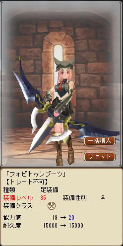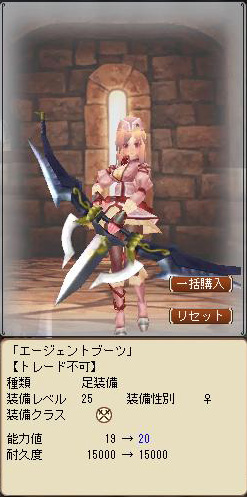 今まで装備してたのがLv20装備で総能力(AC)105の課金防具:クノイチ。