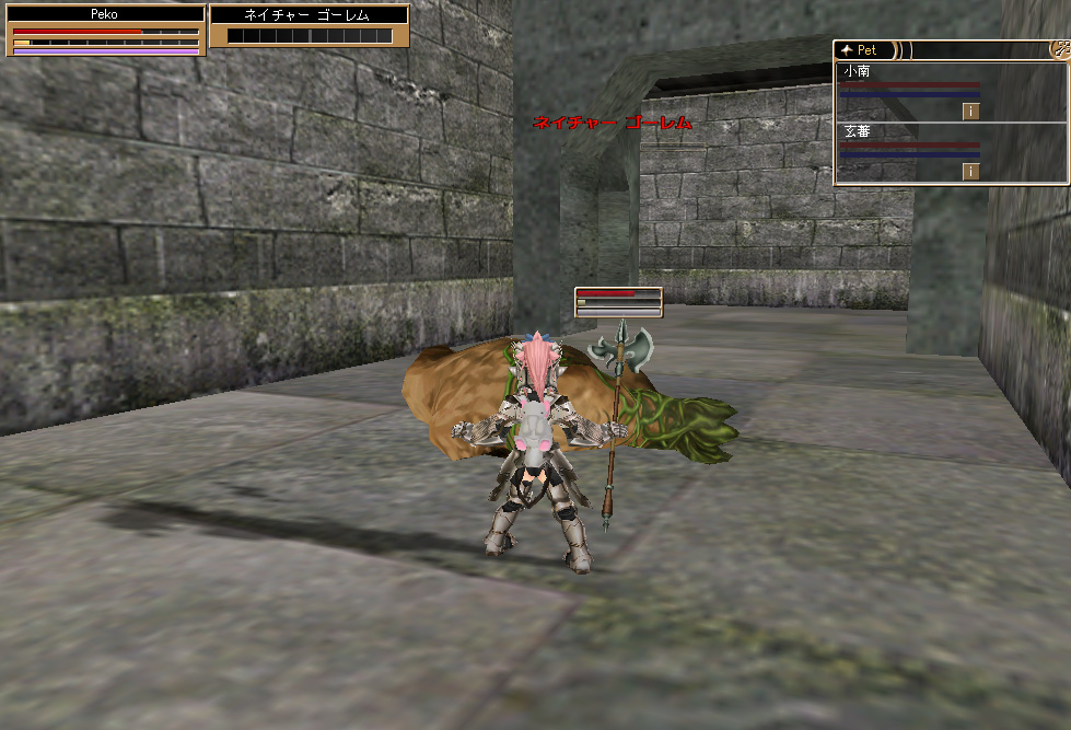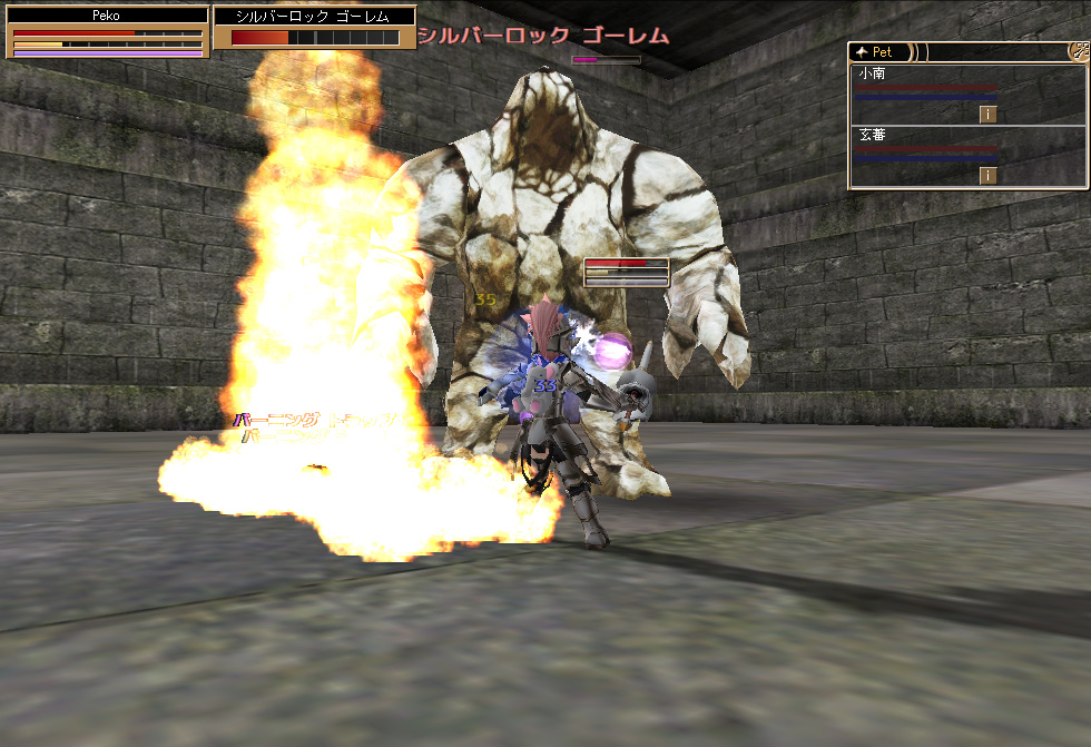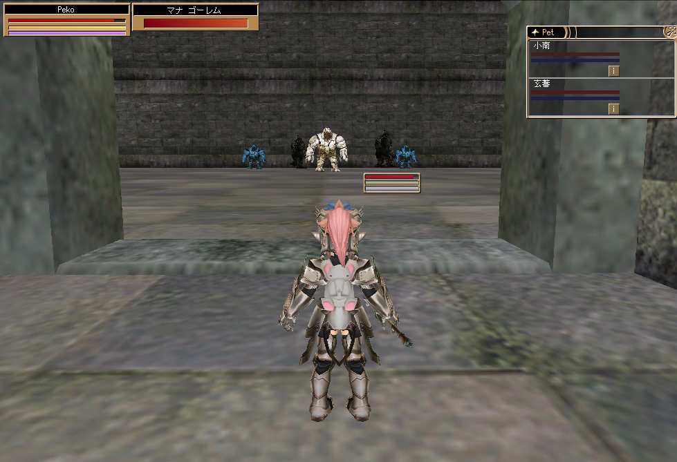 必死になりながらコレらを退け再び広間へ向かうと先ほどのロックゴーレム×2(+再湧きしたロックゴーレム×1)+マナゴーレムが追ってくるぅ~~@@;