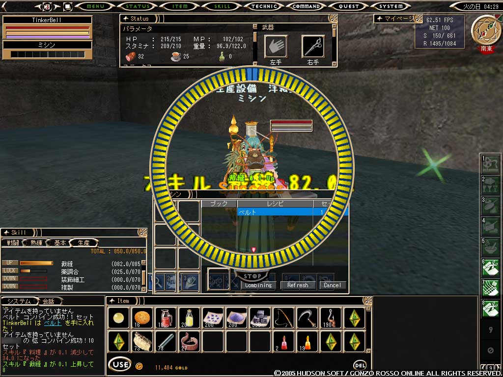 はぃ、TinkerBellが裁縫82.0になりました。