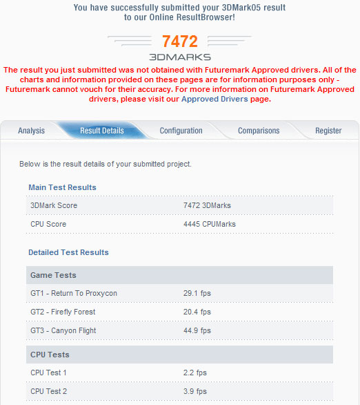 3DMark05でのテストゎ初だったので比較出来ませんが、他の同じような構成分を見ても妥当なスコアかなって感じ。