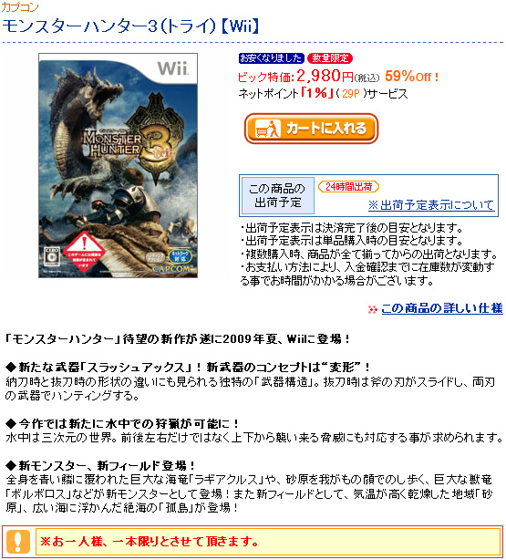 一部でゎボスモンスター含め全体的にボリューム不足が囁かれていますが、いぁ全然楽しみです。