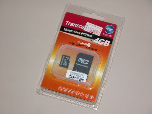 microSDHCカード 4GB Class6 MS Pro DUO変換アダプタ付。