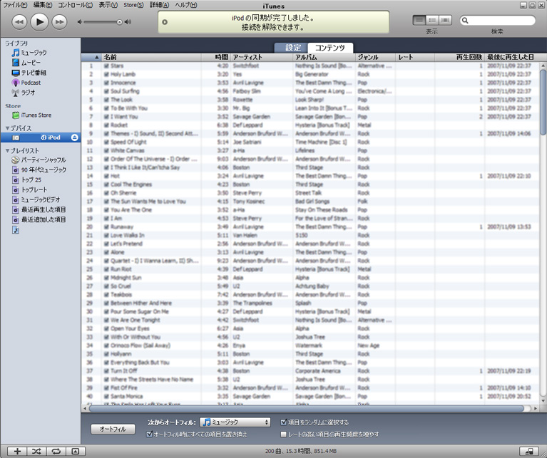 で、200曲 851.4MB(15.3時間)分吸い出してshuffle君へ放り込みました(*´∇`)